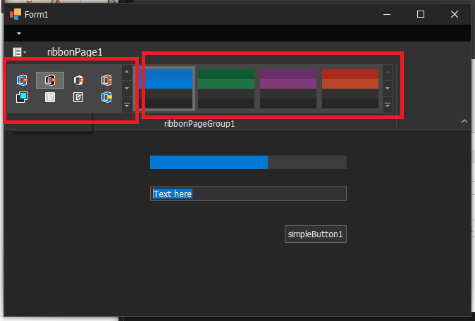 - ribbonPageGroup1 클릭후 Skin Item -> Skin Gallery 선택