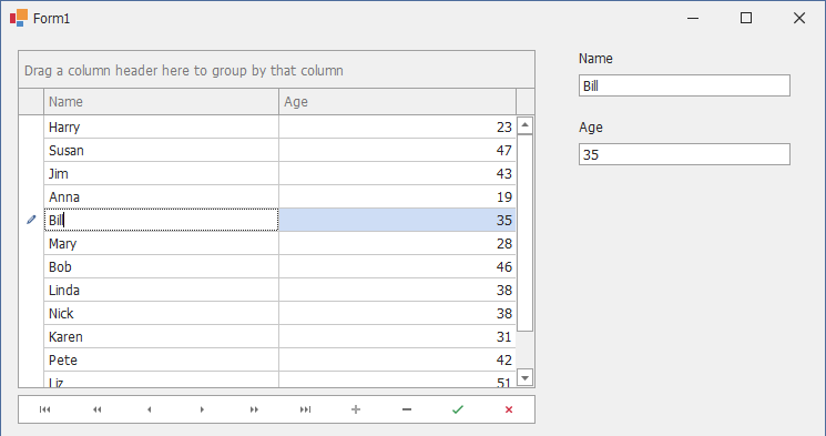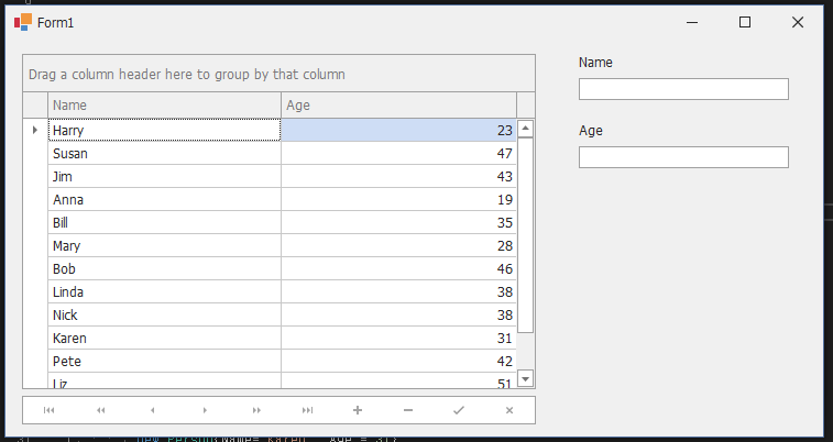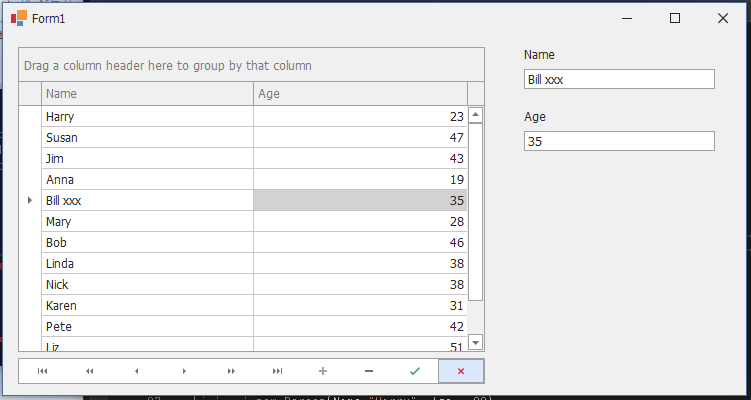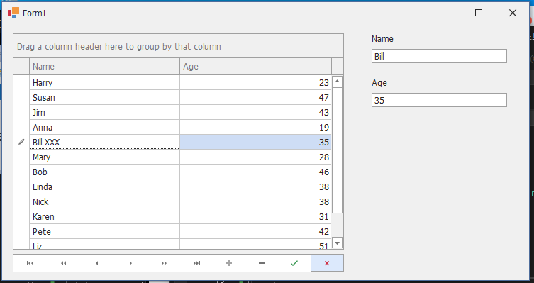 //ageEdit.DataBindings.Add("EditValue", data, "Age");