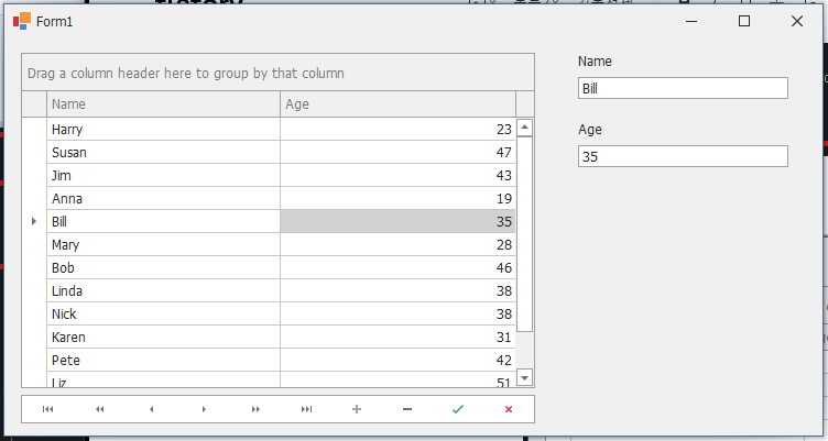 - 마우스 클릭이나 DataNavigator를 사용시 오른쪽 Name, Age에 같이 표시해 보겠습니다.
