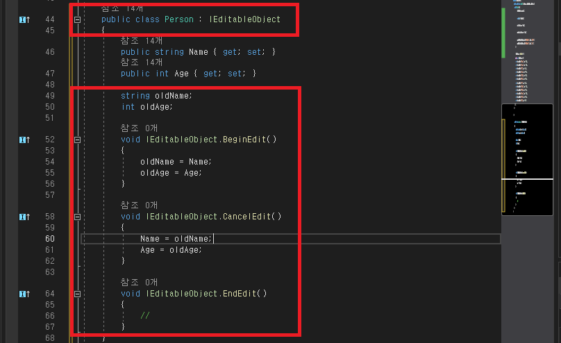 - Person class 부분을 BeginEdit/Cencel/Edit/EndEdit 기능을 추가했습니다.