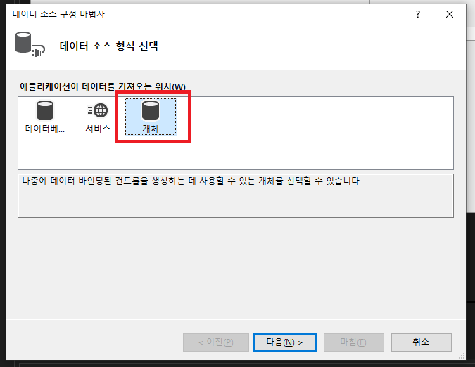 - 팝업창에서 객체 선택 -> 다음