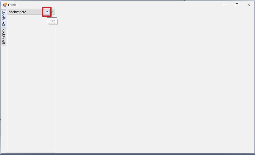 - 추가된 dockPanel3를 마우스 왼쪽클릭후 드래그해서 dockPanel2에 포함합니다.