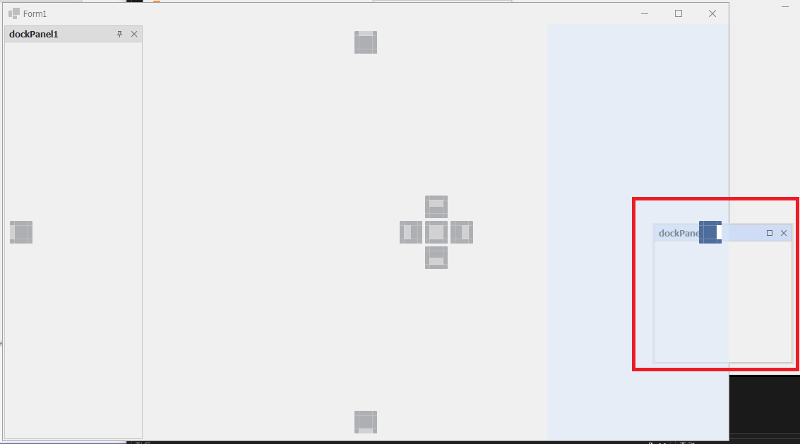 - 추가된 dockPanel2를 마우스 왼쪽클릭한 상태에서 움직이면 아래와 같은 화면이 나오게 됩니다.
