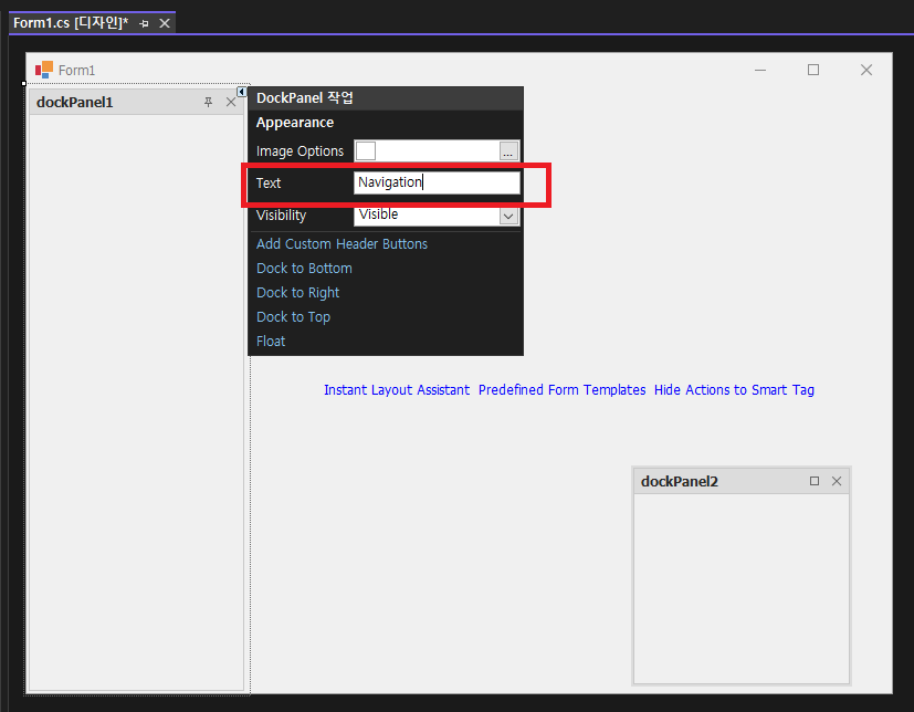 - Text 변경 : dockPanel1 -> Navigation