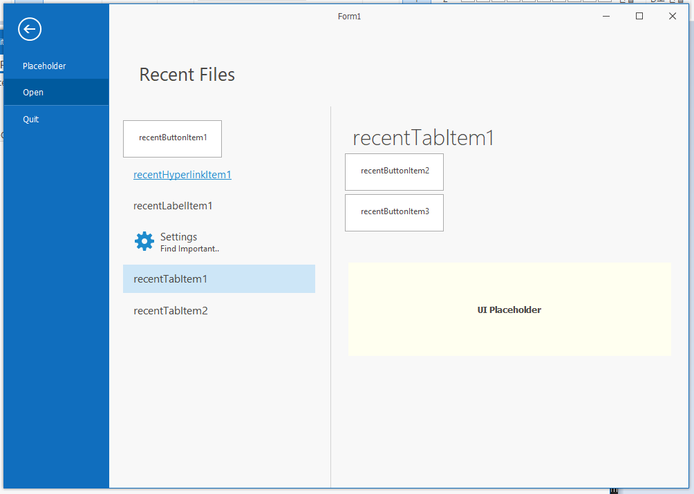 - 'Add Backstage View (Office 2010/13 Style Menu)' 선택시 아래와 같이 창 하나가 생성됩니다.