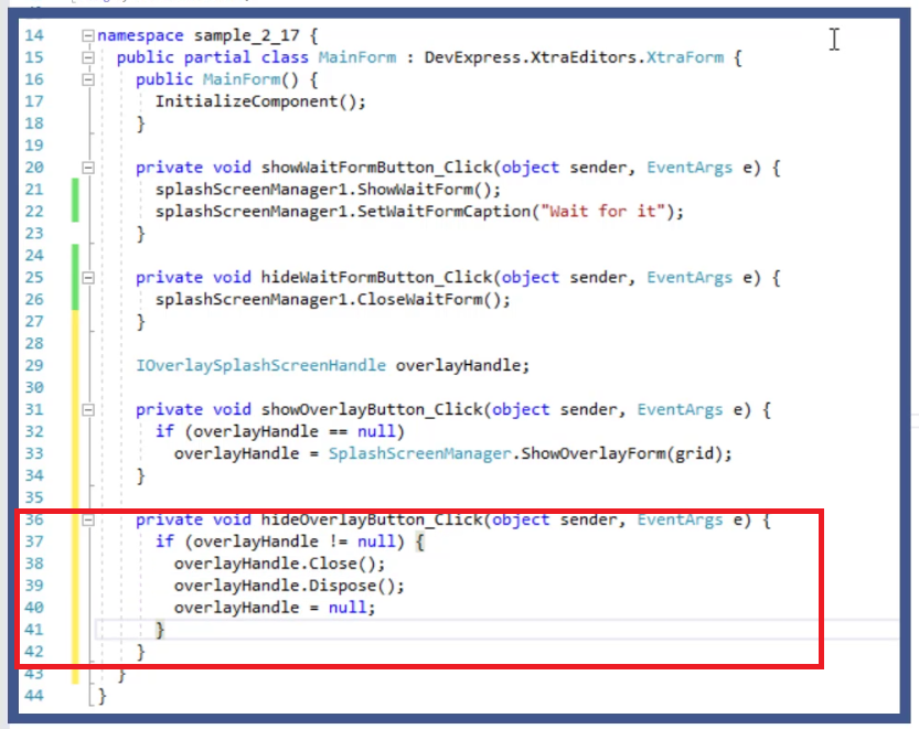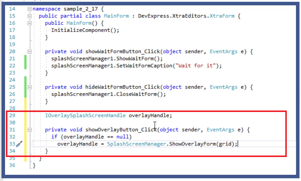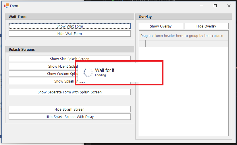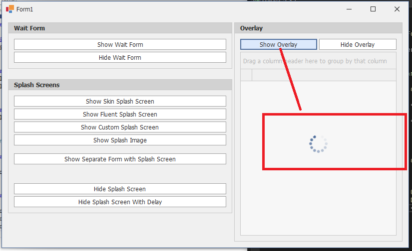 overlayHandle = SplashScreenManager.ShowOverlayForm(grid, customPainter: overlayTextPainter);