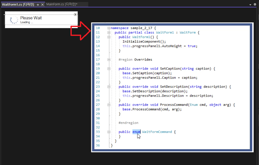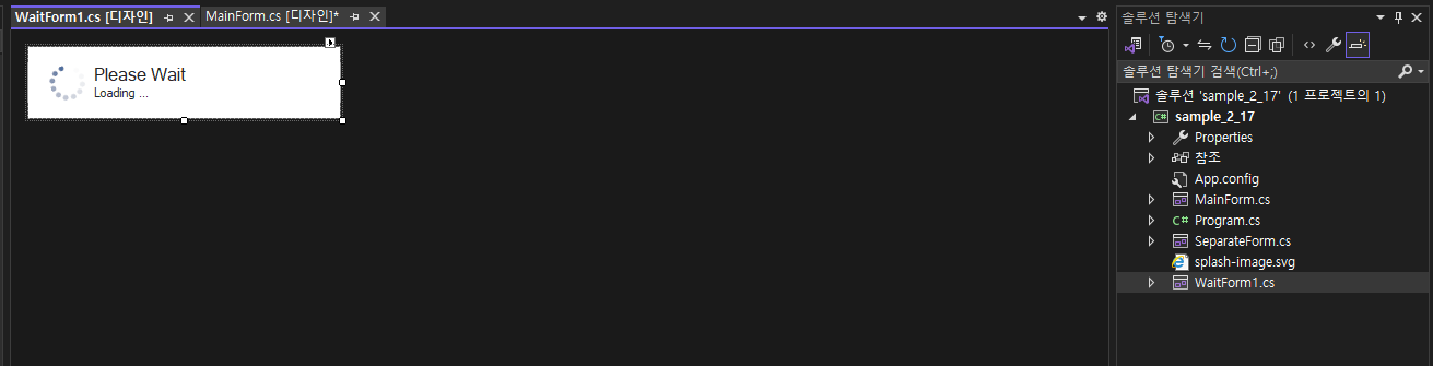 - WaitForm.cs 더블클릭시 기본 폼화면입니다.